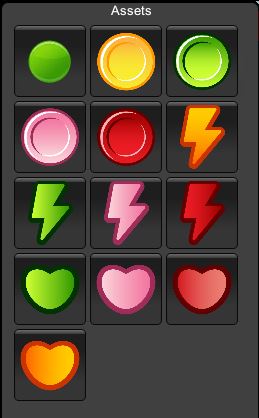 Assets Panel provides variety of game objects related to each game theme: